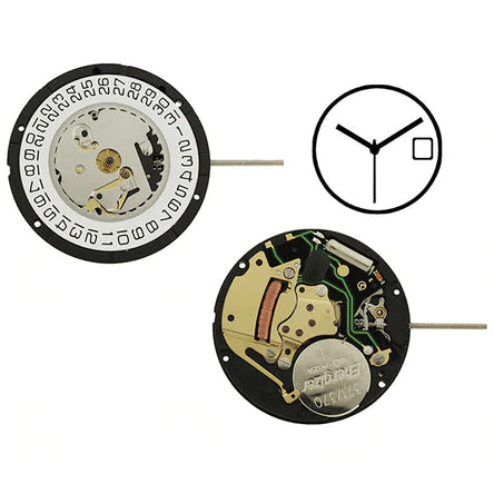 ISA 330/103 Quartz Watch Movement is an ISATRONIC 3 hand (hour, minute, sweep second),gents quartz watch movement with date at the 3 o'clock position. This is a 10 1/2 ligne movement with a diameter of 23.30 mm and a height of 2.50 mm. This is an 5 jewel movement, Swiss parts with gilt plates, hand dimensions are 120/70/20 (h/m/s), uses a 371 battery.