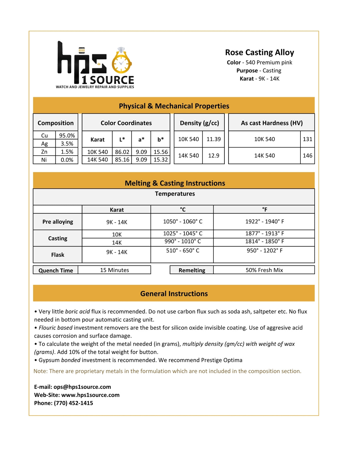 We absolutely love this rose gold alloy. Designed after significant R & D to deliver a superior and loved rose gold color in an easy to cast alloy. This is a top seller for a reason.
