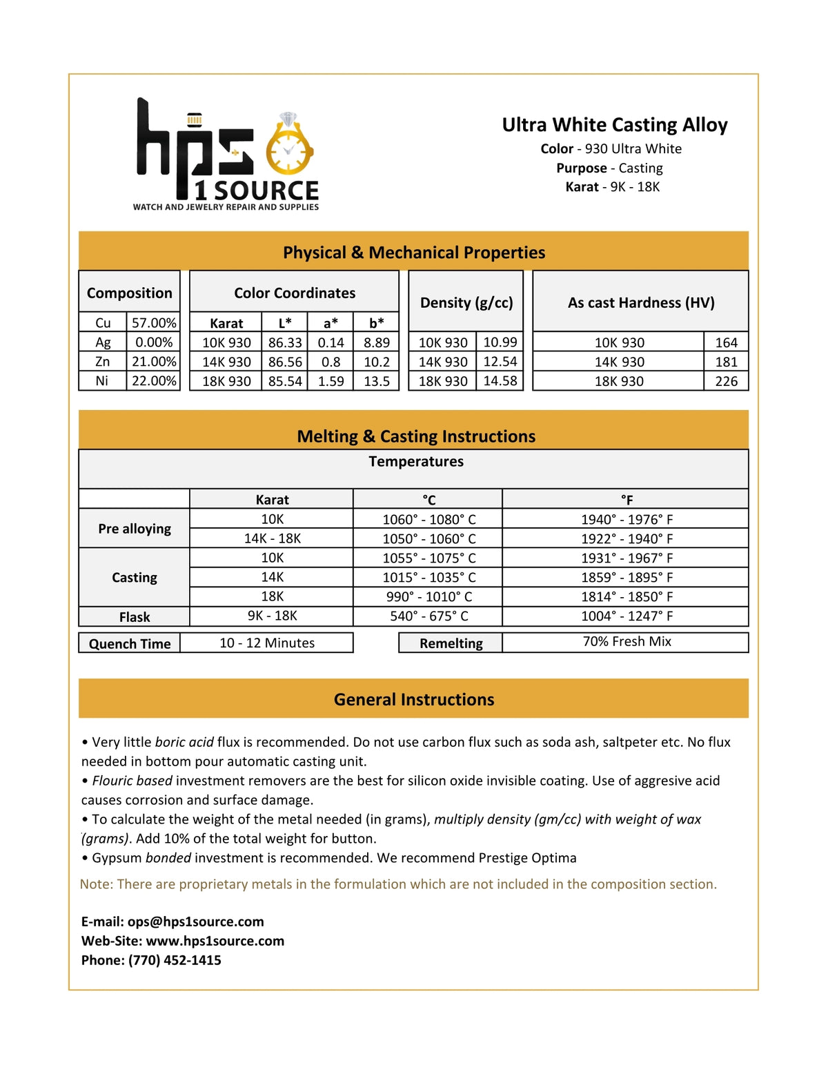 Ultra white alloy great for 10-14K white gold casting.
