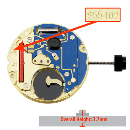 - Overall height from the bottom of the movement to the top of the hand pinion is 3.7mm