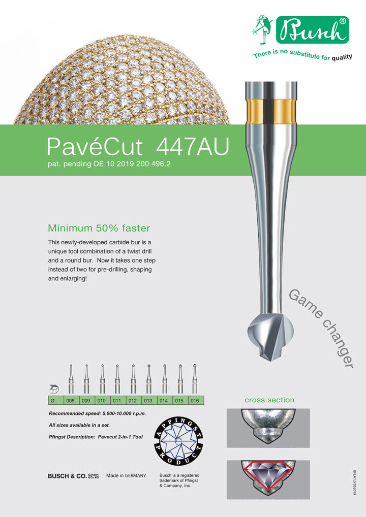 Use: The PavéCut consolidates two work steps into one: predrilling with a twist drill and shaping and enlargement with a round bur. This saves time, increases precision and optimizes the result.