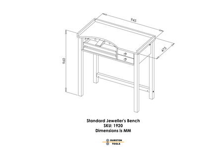 The Durston Standard Jewellers Bench, the latest in the line up of our quality Hardwood Bench range. Featuring two large working tray drawers and an additional two side drawers, the Standard Bench offers exceptional value for money. All of the drawers on this bench are felt lined giving extra protection for storing delicate items.