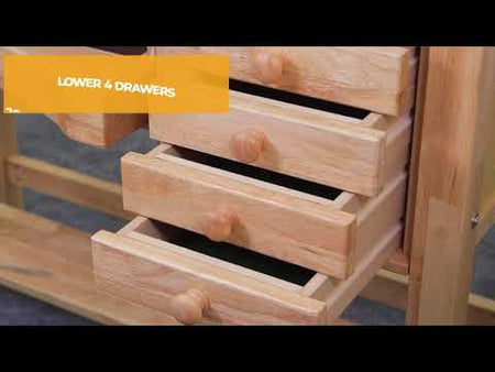 This Quality Bench offers a generous worktop area with a retaining surround and also features a hardwood bench peg, adjustable arm rests and mandrel holes. Made from Quality Hardwood (some non structural parts made with HDF)