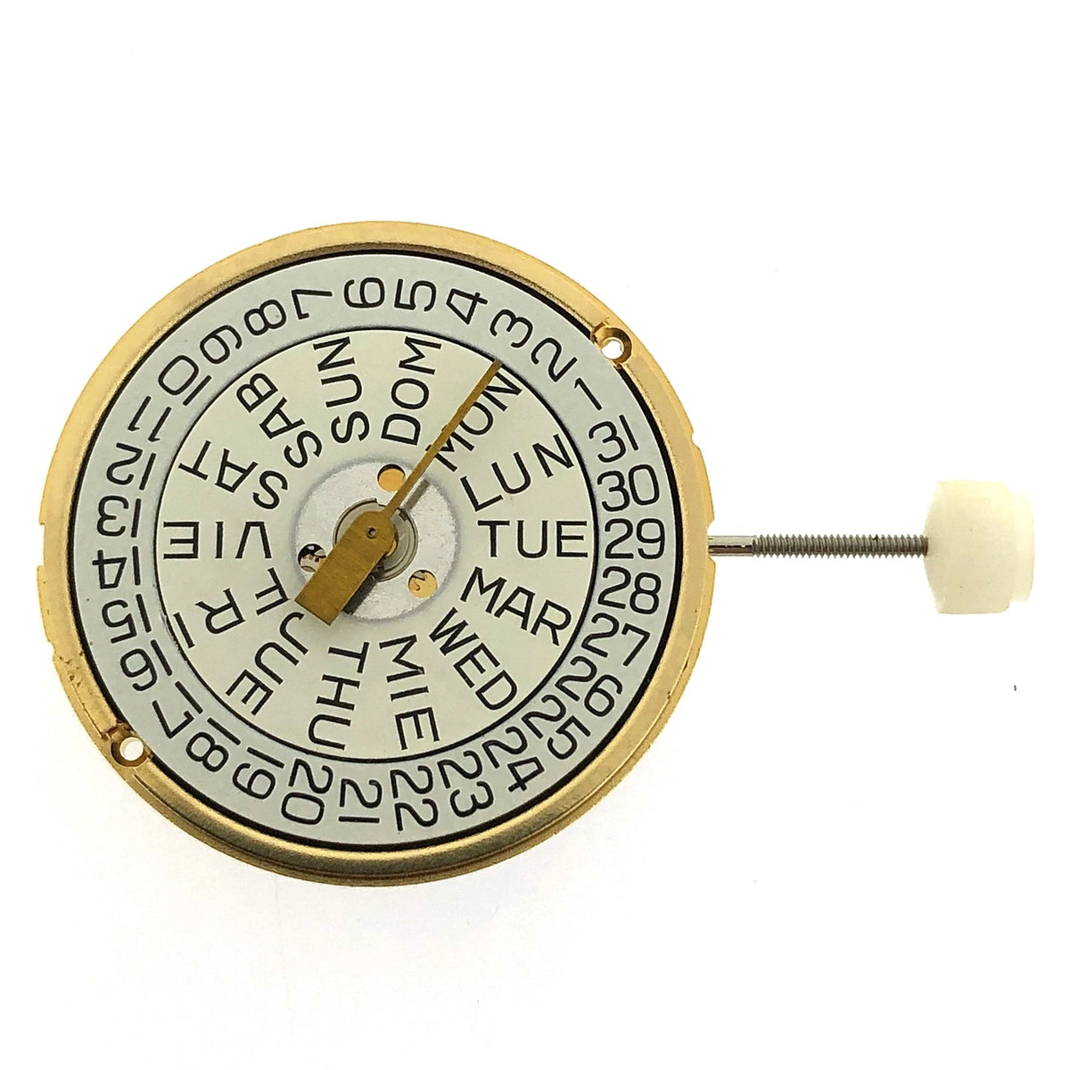 ETA 255.421 MOVEMENT SIZE: 10 1/2 THICKNESS: 2.45 MM HANDS: 70 / 120 / 20 3 HANDS / DAY & DATE. Swiss Made ETA Watch Movement.