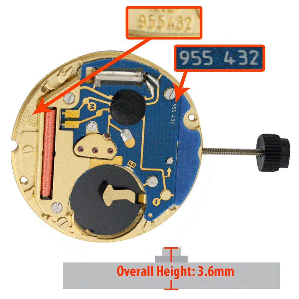- The height from the bottom of the watch movement to the top of the canon pinion 3.6 mm