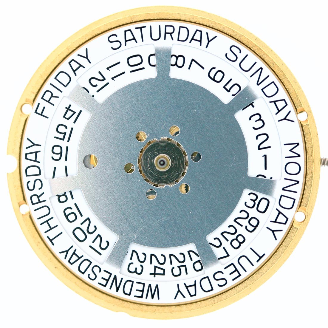 - Day and date dial are white with black numbers