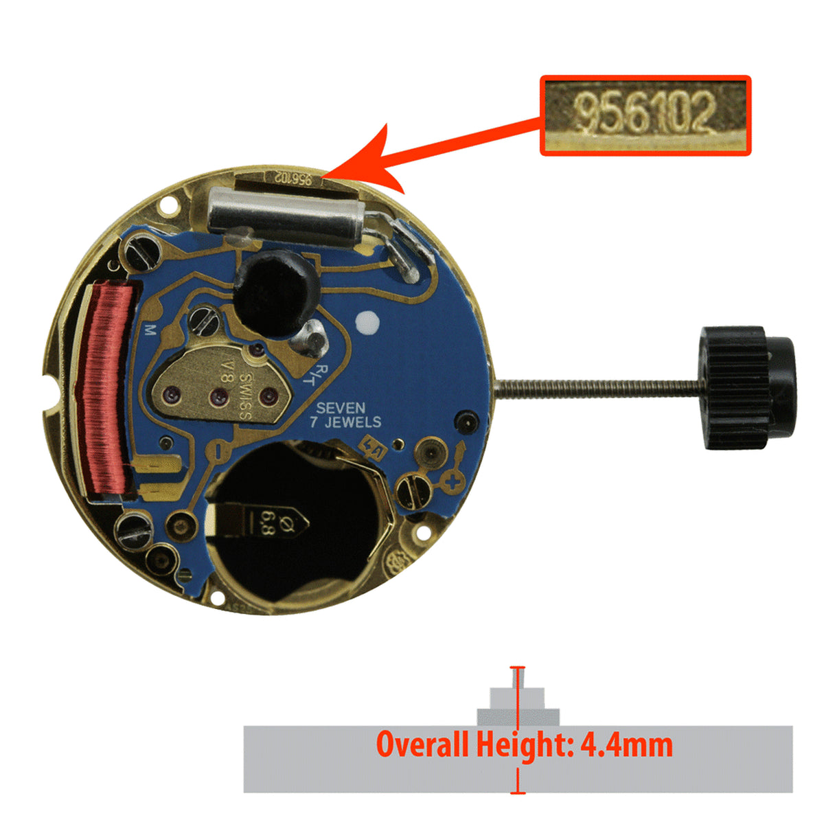 - Overall height from the bottom of the movement to the top of the hand pinion 4.4mm