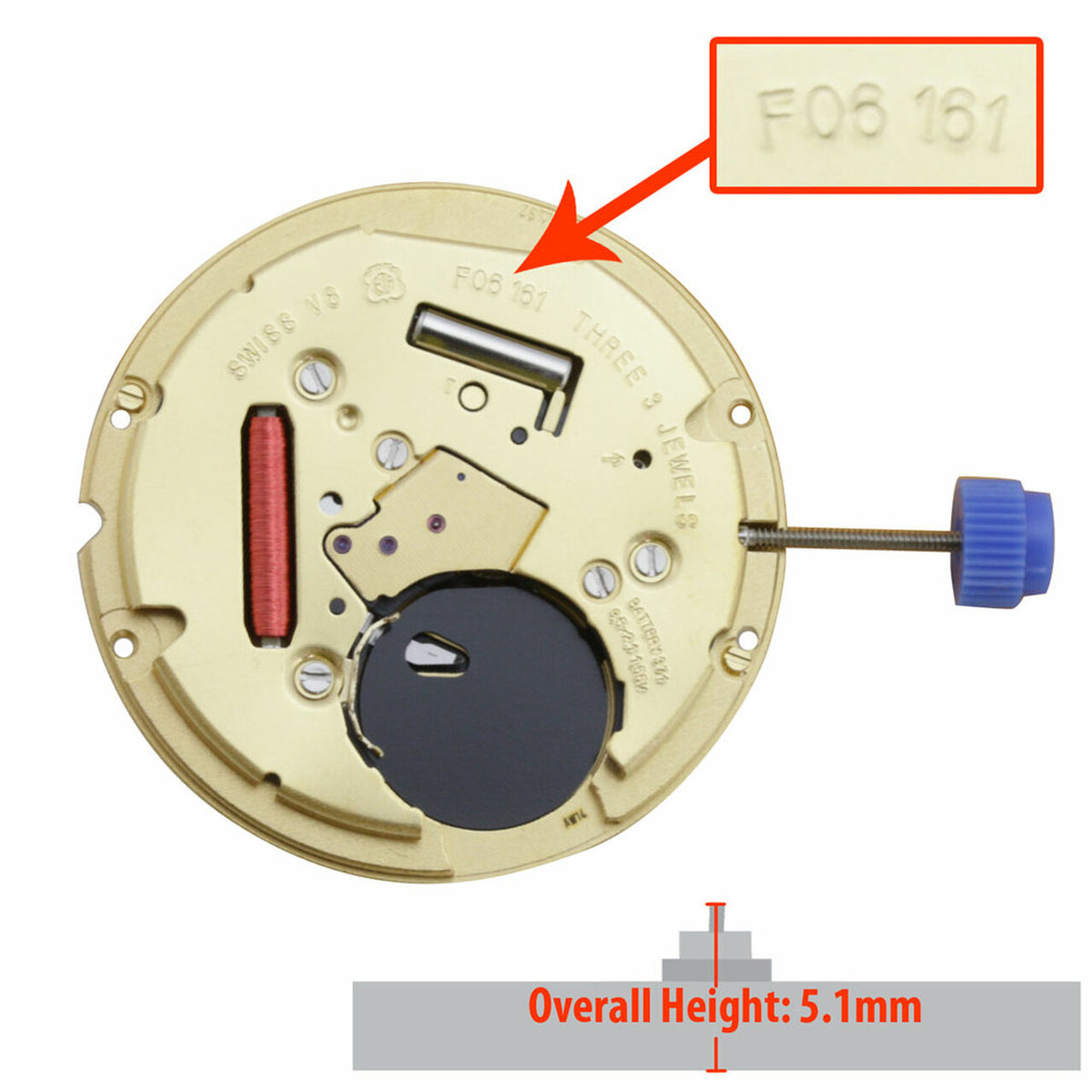 - The height from the bottom of the watch movement to the top of the sweep second pinion is 5.1mm