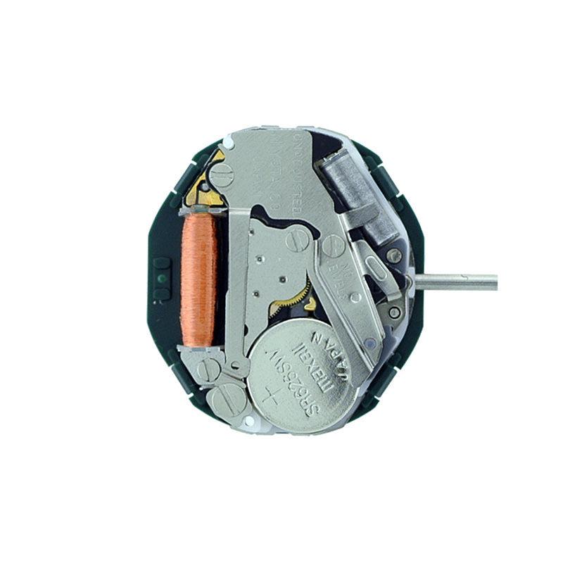 2005 Miyota Quartz Watch Movement is a 3 hand movement (hour / minute / seconds) day and date @ 3 o'clock position. This ladies movement is a 6 3/4 x 8 ligne movement, dimensions are 16.30 mm x 17.80 mm with a thickness of 4.15 mm, overall height 5.88mm. Hand dimensions are 120/70/17 (h/m/s). 0 jewel movement, uses a 377 battery. Stem is part number 065-299 (tap 0.90 mm/ tap 10).