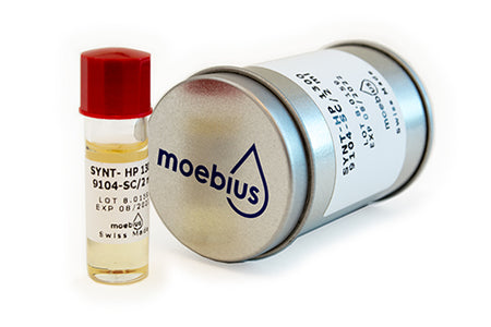 Moebius SYNT-HP is a high pressure oil for precision mechanics, ideal for mechanical watches. 1300 viscosity for application in mechanical watches for gear train, barrel arbor, steel-steel friction partners. Also effective for board instruments, micromotors, mini ball bearings, and more. Excellent aging stability ensures a constant viscosity over a long period of time. High pressure resistance. Superior lubricating and adherence capacity.